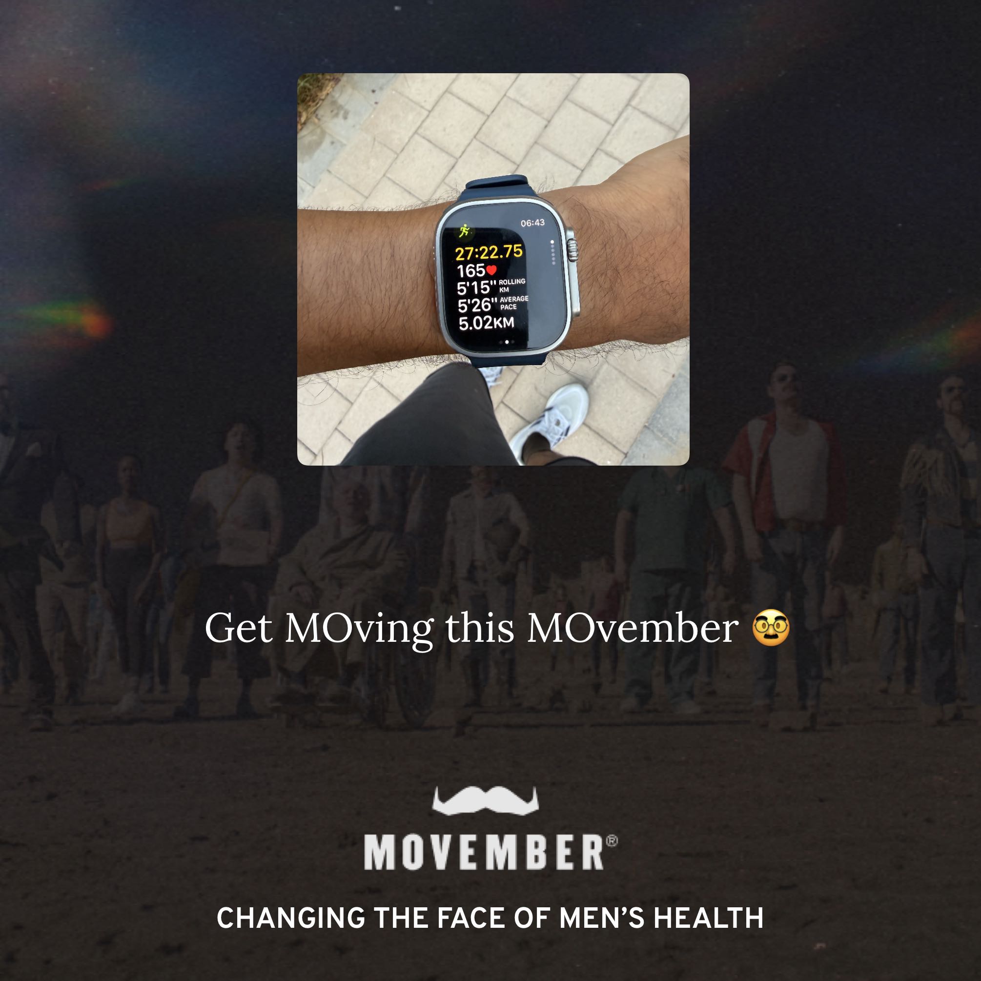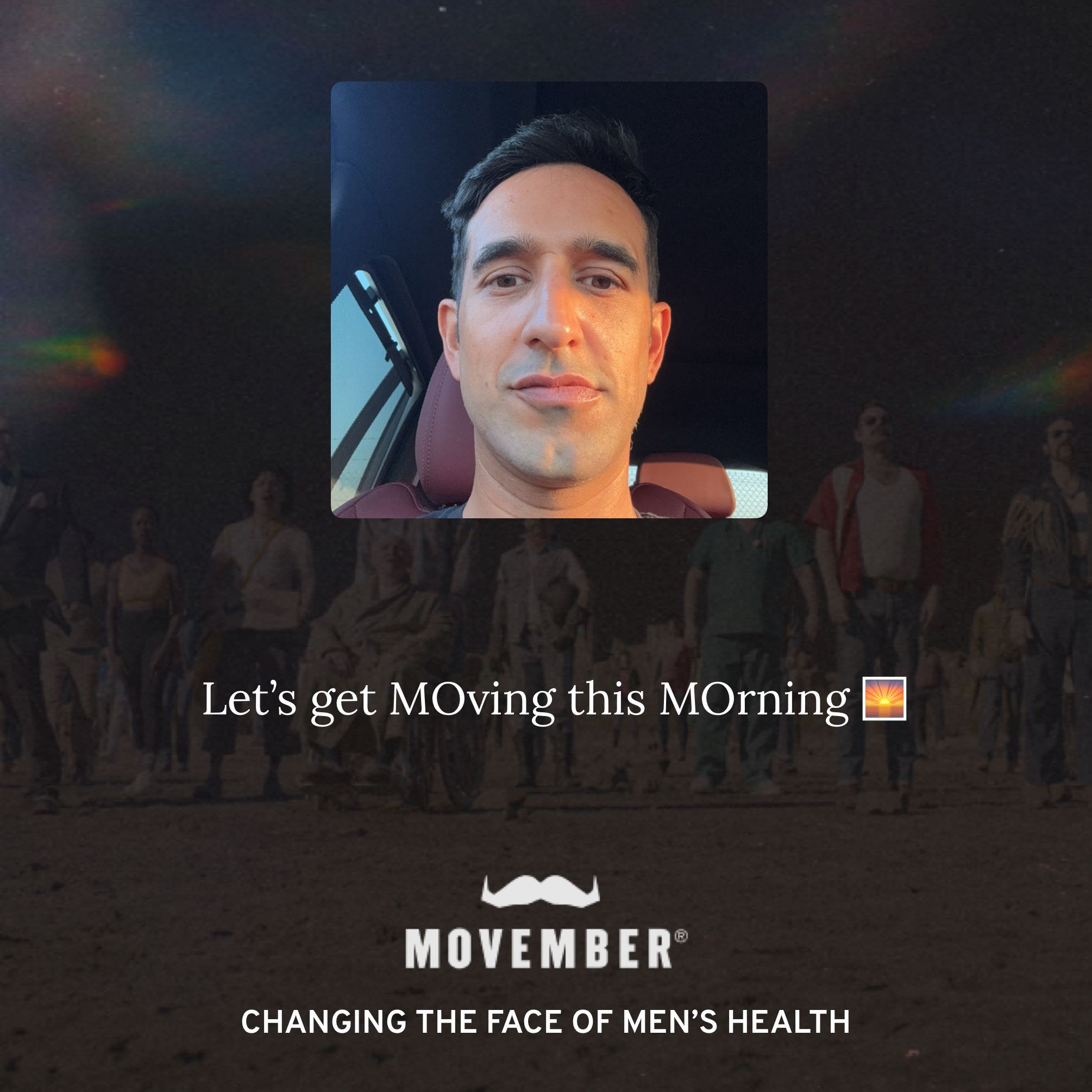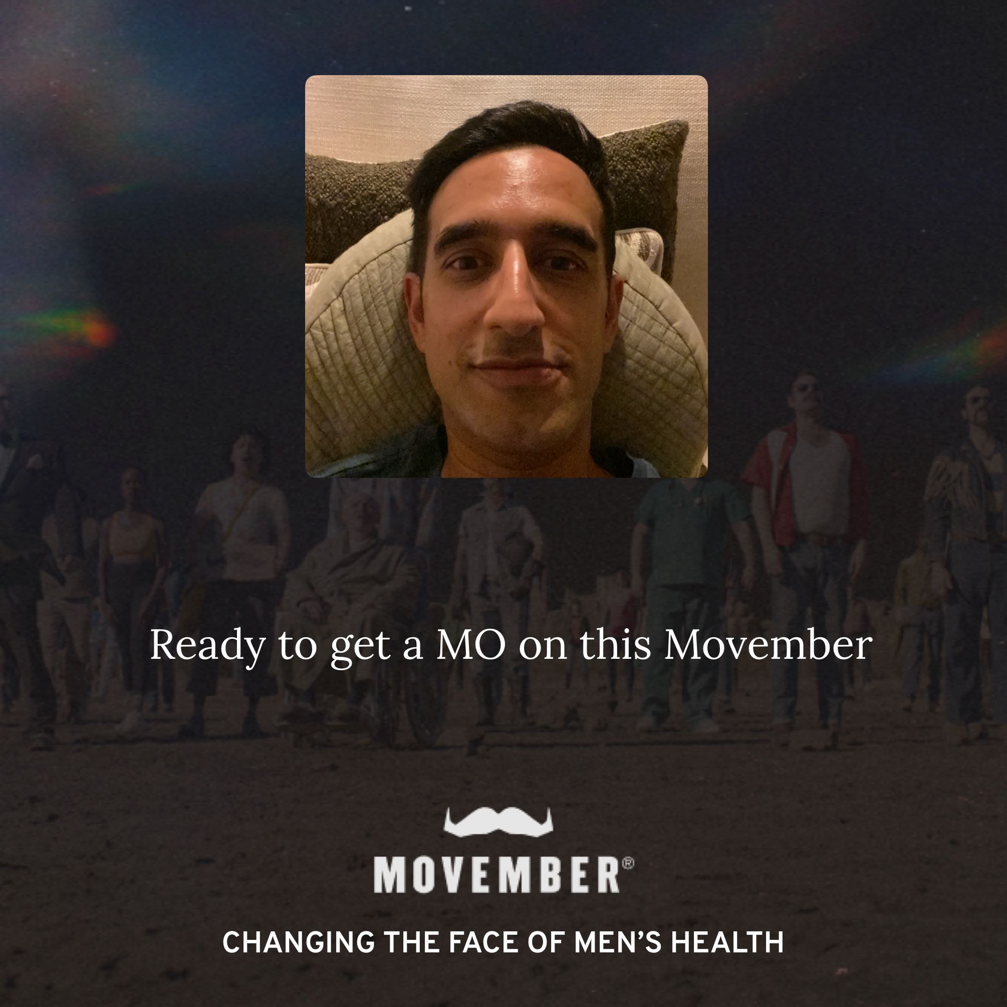 Movember is the leading charity changing the face of men's health, and this Movember I'm joining them. Together we can make a difference for men's health – in prostate cancer, testicular cancer, mental health and suicide prevention. Help me stop men dying too young.