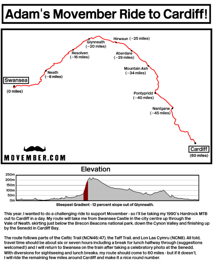 An outline of my planned route to Cardiff.